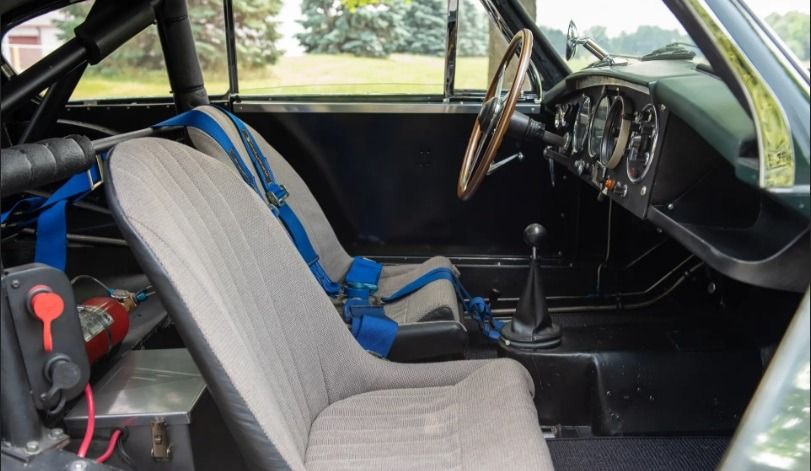 This Aston Martin DB 2/4 was completed in October 1953. Finished in the exterior color Blue Haze, it was imported through the legendary S.H. Arnolt Inc. of Chicago, Illinois. In the early 1990s this Aston Martin was prepared for vintage racing for the then-owner Jim Simpson. The work was performed initially by Robert Clerk while working for Peter Livanos at Aston Vintage Racing Services shop in Stamford, Connecticut. A high-performance engine was built in the United Kingdom by Martin Cheetham and installed. Later work was performed by Robert and Jon Clerk at their race shop, Performance Racing in Pompano Beach, Florida. As expected, the car features a fuel cell, roll bar, and seat harness, and much work was undertaken on the brakes and suspension. As the subsequent engine power band was found to be quite narrow, Simpson had the engine rebuilt again, this time by well-known specialist Lance Evans of Steel Wings in New Jersey, during which it was slightly detuned to make it a more tractable race car. In a recent conversation with Jon Clerk at Steel Wings, his memory is that the rebuilt engine was probably producing around 210-220 horsepower.